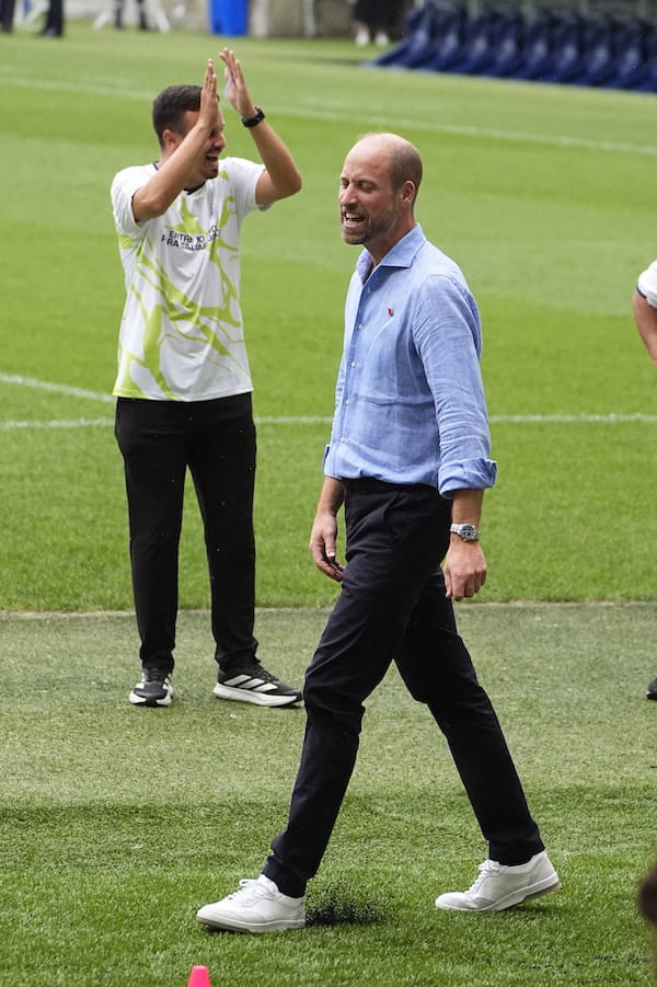 Actuellement en déplacement au Brésil, le prince de Galles a fait un arrêt au légendaire stade Maracanã, ce lundi 3 novembre, pour rencontrer les participants du programme Generation Earthshot. Il avait alors revêtu une chemise légère en lin bleu, décorée d'un pin's rouge, qui se mariait à merveille avec son pantalon noir fuselé. Du côté des chaussures, le futur souverain britannique de 43 ans avait fait preuve de décontraction en optant pour une paire de baskets blanches à lacets. Très stylé décidément !