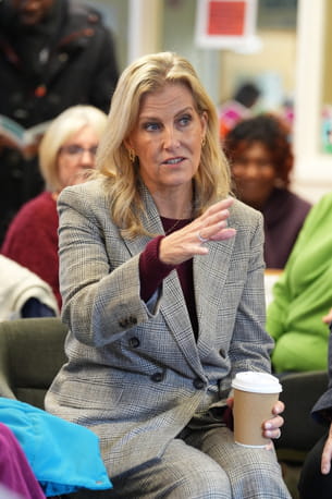 En visite à l'atelier RAW à Oxford, la duchesse d'Édimbourg a enfilé un tailleur-pantalon structuré dans un motif Prince de Galles très en vogue ces dernières saisons. La veste ample et croisée était parfaitement ajustée aux épaules, ce qui lui donnait une allure formelle et élégante. Sous celle-ci, elle portait un pull fin à col rond de couleur bordeaux, une teinte qui s'harmonisait élégamment avec les tons neutres du tailleur. L'ensemble est à la fois sophistiqué, intemporel et dans un style business chic très inspirant.