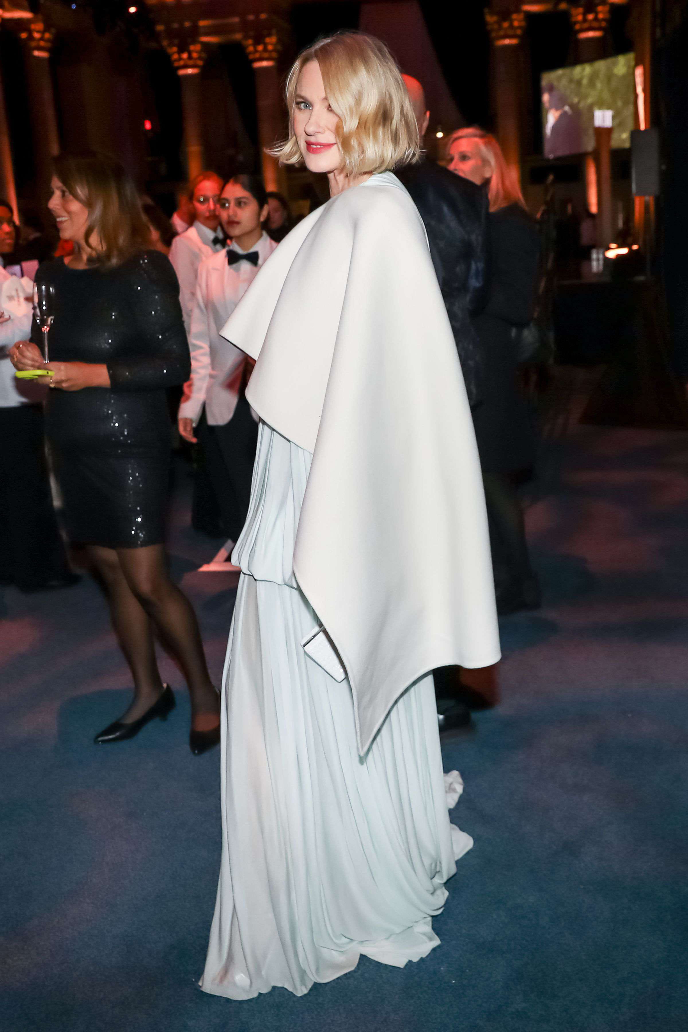 Dans ce total look monochrome, Naomi Watts était absolument ravissante ! Elle portait une robe en mousseline plissée blanche pour un rendu aérien et chic. La coupe au drapé délicat était surmonté d'un élément audacieux : une cape asymétrique courte et épaisse, coupée dans un tissu blanc immaculé. La pièce idéale pour ne pas avoir froid en robe cet hiver ! L'ensemble était un parfait équilibre entre sophistication et modernité. Avec ce look, la star a choisi de rehausser sa beauté d'une touche de rouge à lèvres rouge.