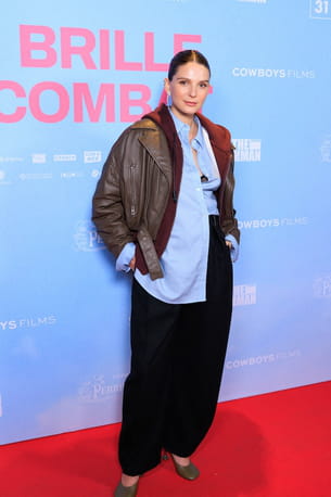 Immortalisée devant le photocall de l'avant-première du film Qui brille au combat, ce mardi 16 décembre, Joséphine Japy a brillamment maîtrisé l'art du layering. L'actrice affichait un soutien-gorge transparent glissé sous une chemise bleue, elle-même superposée à une veste à capuche bordeaux et à un blouson en cuir marron. Pour le bas, elle avait opté pour un pantalon noir extra-large, subtilement choisi pour dissimuler son ventre arrondi. La silhouette était complétée par une paire de chaussures vert olive ajoutant quelques centimètres à son allure.