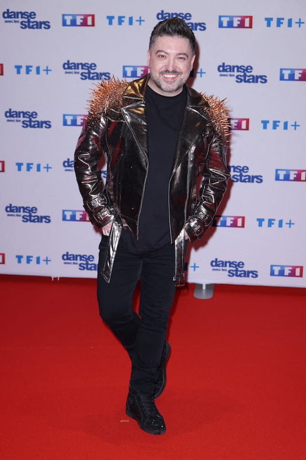Ce jeudi 18 décembre, Chris Marques a fait une apparition remarquée devant le photocall de la nouvelle saison de Danse Avec Les Stars. Le danseur professionnel a une nouvelle fois sublimé des basiques en les mariant avec brio à une veste excentrique. Sa silhouette comprenait en effet un jean slim noir et un tee-shirt à col rond qu'il avait associé à une veste en cuir à l'effet métallique, parée de pics en or au niveau des épaules. Une paire de baskets à strass venaient également parfaire l'ensemble avec sophistication.