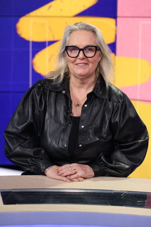 ​​​​​​Valérie Damidot arbore ici un look rock-chic moderne qui s'éloigne de son image habituelle en salopette. L'élément central est une veste en cuir noir à la coupe oversize, une pièce forte qui apporte structure et caractère à sa tenue. Les manches ballons ajoutent également une touche tendance, équilibrant sa silhouette. L'animatrice télé mise sur l'accumulation de bijoux dorés et argentés (bagues, bracelets, colliers fins) pour féminiser l'ensemble. Ses lunettes XXL à monture noire épaisse encadrent son regard avec assurance.