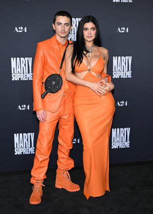 Lors de l'avant-première de Marty Supreme à New York, le couple a marqué les esprits avec un look coordonné audacieux en cuir orange fluo. Timothée Chalamet arborait un costume monochrome composé d'une veste et d'un pantalon en cuir texturé, assortis à des bottines de style Timberland de la même teinte. À ses côtés, Kylie Jenner portait une robe longue sirène découpée au niveau de la taille, soulignant sa silhouette avec un décolleté plongeant orné de détails chromés. Pour sublimer sa tenue, elle a craqué pour un collier imposant et des ongles extra-longs assortis à sa robe.