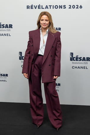 Virginie Efira était plus chic que jamais lors du dîner des révélations des César 2026 qui se tenait le 19 janvier dernier. Pour l'occasion, la comédienne avait opté pour un bordeaux très hivernal, rompant avec ses habituelles tenues noires. Cette nuance intense et profonde recouvrait ainsi son costume Saint Laurent, composé d'un blazer aux épaulettes volumineuses et d'un pantalon ample. Un ensemble qu'elle a associé à une chemise à rayures et à des escarpins vernis de la même couleur. Le résultat ? Une allure puissante.