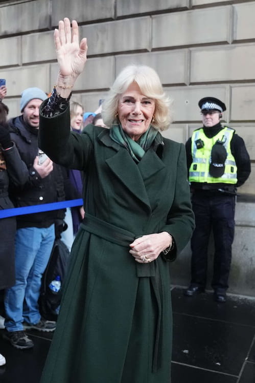 Éblouissante en total look vert, la reine Camilla fait sensation en Écosse