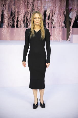 Au défilé Chanel, Vanessa Paradis est sublime dans cette robe midi noire en maille, une pièce forte qui est idéale à porter après 50 ans. Le contraste entre la texture travaillée et la coupe épurée du vêtement souligne sa silhouette tandis que le col orné de boutons-bijoux captive la lumière. Pour parfaire ce look de "front row", elle mise sur des escarpins noirs à bout carré. Sa chevelure blonde signature, laissée libre et naturelle, vient adoucir cette allure sophistiquée. Une belle leçon de mode !