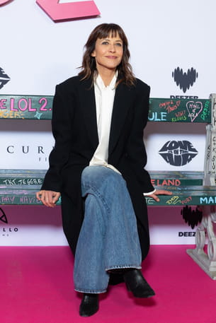 Pour l'avant-première de LOL 2.0, Sophie Marceau incarne l'élégance "effortless" à la française. Elle arbore un look androgyne et chic, composé d'un long manteau noir oversize aux épaules structurées, porté sur une blouse en soie ivoire au col lavallière. Pour casser le côté formel, elle a choisi un jean large "flare" à l'esprit vintage qui apporte une touche décontractée. Des bottines noires à bouts carrés complètent cette silhouette équilibrée. Sa frange iconique et son sourire naturel subliment son style intemporel.