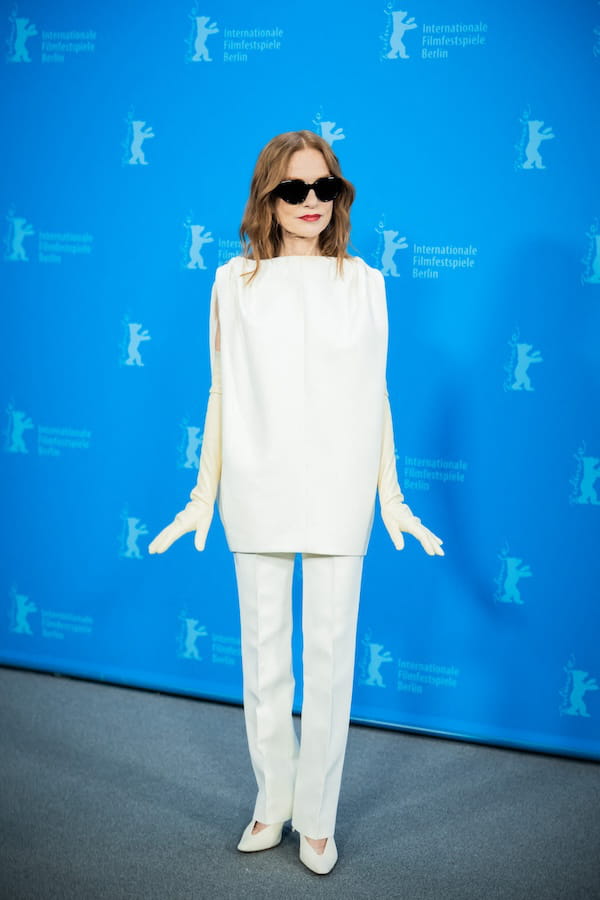Isabelle Huppert a une nouvelle fois démontré l'étendue de son flair mode ce lundi 16 février, alors qu'elle était sur le tapis rouge de la Berlinale afin de présenter The Blood Countess. Pour cette apparition, elle a fait le choix d'un ensemble blanc immaculé qui se composait d'un top sans manches oversize avec un pantalon droit allongeant les jambes. Le tout signé Balenciaga et accessoirisé par une paire d'escarpins à bouts pointus et de longs gants d'opéra en cuir. L'ultime détail ? Des solaires à monture noire, parfaites pour casser le monochrome du look.