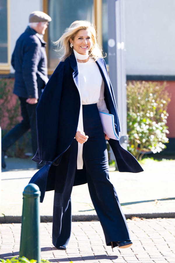 Pour cette sortie en solo, Maxima des Pays-Bas était allée à la rencontre des résidents d’associations de quartier. Lors de ce rendez-vous, elle s'est montrée dans un look de business woman qui lui allait comme un gant. Ainsi, l'épouse de Willem-Alexander des Pays-Bas a tenté un ensemble en deux teintes, alliant le blanc au bleu nuit. Elle portait une blouse blanche qui présentait une particularité. En effet, un long ruban entourait le cou de la reine, avant de descendre sur le côté droit. Ce détail simple mais redoutable ajoutait beaucoup de style à sa tenue. Par dessus, la maman avait choisi un long manteau, dont le coloris était assorti à son pantalon de tailleur.