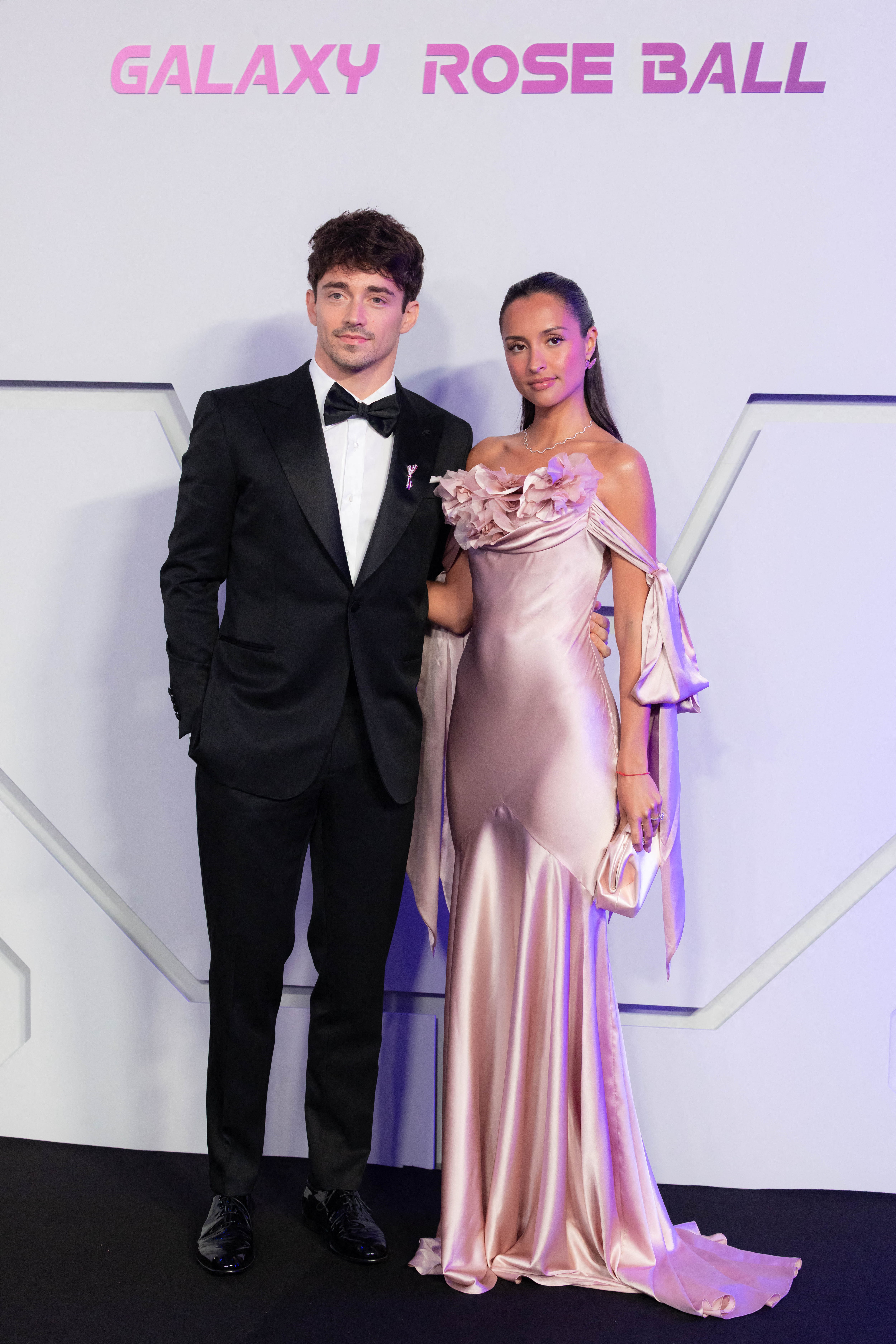 Lors du Bal de la Rose, les deux amoureux ont incarné l'élégance monégasque à la fois classique et romantique. Charles Leclerc a opté pour un smoking noir parfaitement ajusté, doté de revers en pointe et d'un nœud papillon en soie, respectant à la lettre le code vestimentaire de l'événement. À ses côtés, Alexandra Saint Mleux a captivé tout le monde par sa douceur et son éclat. Elle portait une robe sirène Nina Ricci en satin rose poudré dont le bustier drapé était orné de fleurs en relief. La coupe soulignait sa silhouette parfaite avec fluidité, tandis que les manches tombantes ajoutaient une touche de modernité.