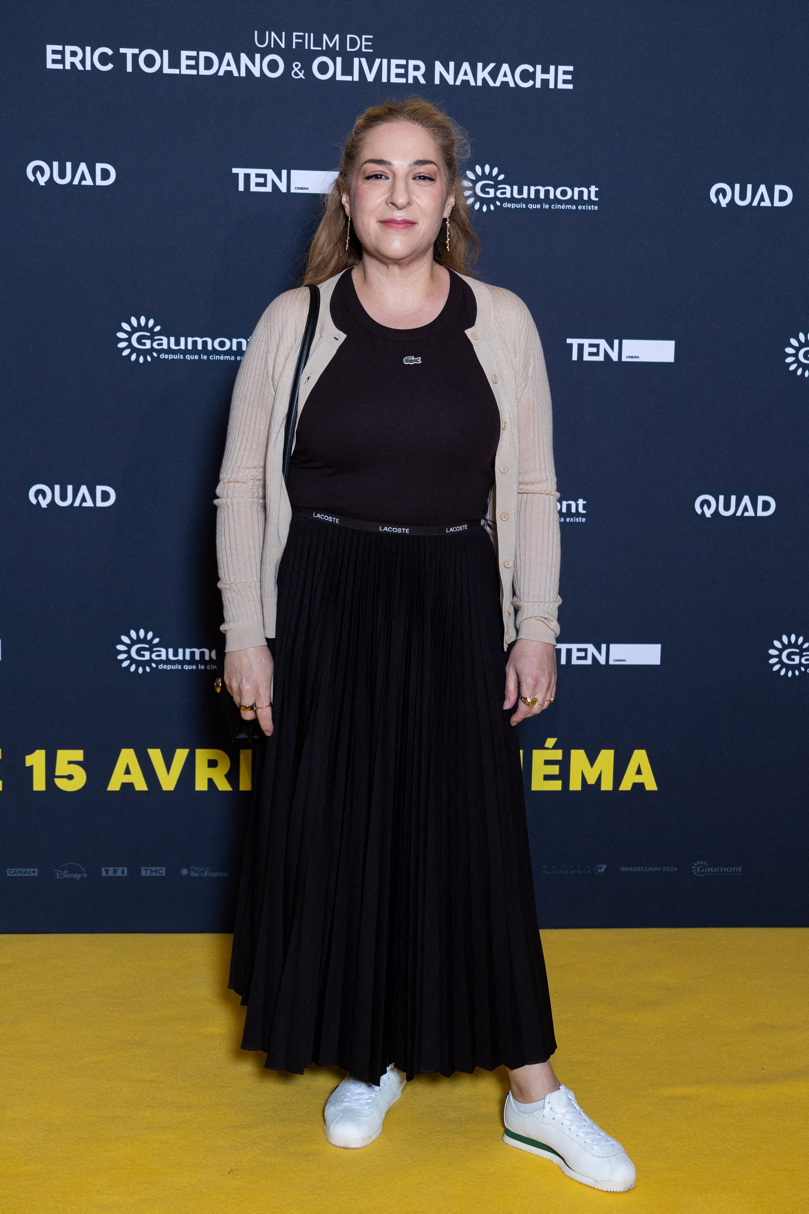 Pour la première du film Juste Une Illusion, Marilou Berry a choisi d'adopter une tenue à l'esthétique sport-chic. Elle portait une robe noire Lacoste ajustée à col rond, associée à un gilet en maille fine de couleur beige sable, porté ouvert pour une allure décontractée. La coupe de la jupe longue plissée apportait du mouvement tandis que la ceinture élastique avec le logo de la marque renforçait le côté streetwear. Pour casser le côté formel de la jupe longue, l'actrice a misé sur des baskets blanches basses classiques, ce qui rend la tenue parfaite pour un événement en journée.