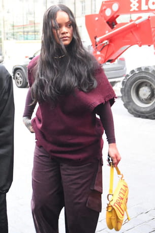 Quand il est question de style, Rihanna ne laisse rien au hasard. Aperçue dans les rues de Paris le 4 avril dernier, la star américaine avait choisi une silhouette monochrome dans les nuances bordeaux comprenant un top manches longues, un pull destroy sans manches, un pantalon baggy à poches et une paire d'escarpins pointus. Mais le véritable point fort du look résidait dans son saddle bag Dior en version jaune, orné de l'inscription "Dracula" en rouge. Un choix audacieux qui apportait instantanément du caractère à l'ensemble.