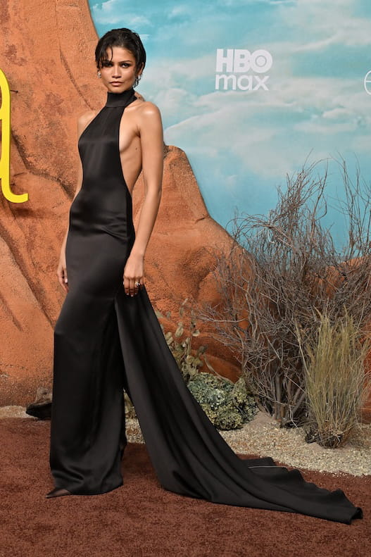Tout le casting de Euphoria s'était donné rendez-vous à Los Angeles ce mardi 7 avril pour la première très attendue de la saison 3. Et parmi les actrices qui ont retenu l'attention, il y a évidemment Zendaya. Elle avait jeté son dévolu sur une longue robe en satin couleur chocolat de Ashi Studio. Les détails ? Un col halter, un dos nu et une traîne élégante tombant sur le sol. Du côté des accessoires, la star misait sur des escarpins pointus assortis, sur des créoles argentées scintillantes et sa superbe bague de fiançailles.