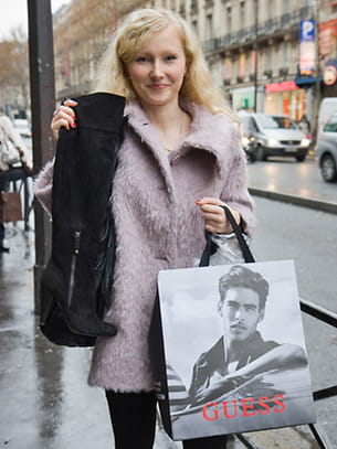 "Aujourd'hui j'ai acheté des cuissardes noires Guess à 200 € au lieu de 300 €. Elles étaient en soldes : c'est un peu mieux, mais je les aurais achetées de toute façon car elles me plaisaient."