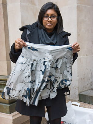 "J'ai eu cette jolie jupe à fleurs chez Promod pour 17,95 € au lieu de 39,95. Aujourd'hui je me fais plaisir car je viens d'avoir mon diplôme et de trouver du travail, alors c'est un peu la fête ! C'est pratique d'être disponible le premier jour des soldes car il y a plus de choix et de tailles... Sinon je m'arrange pour y aller à la fin car ça peut être intéressant aussi."