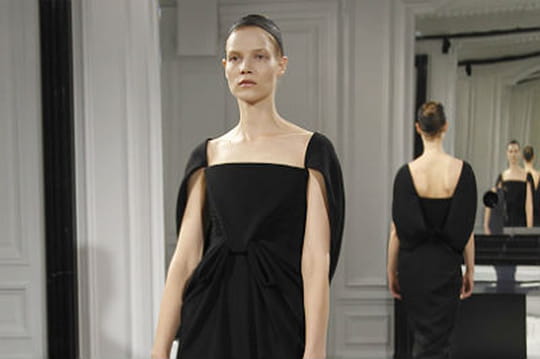 Les modeuses attendaient le défilé Balenciaga avec impatience. Et pour cause, Nicolas Ghesquière, créateur adulé et confirmé, a quitté la maison de couture la saison dernière. C'est Alexander Wang qui a été choisi pour le remplacer. Un choix aussi logique que stratégique puisque le jeune New-Yorkais est l'une des espoirs montants de la mode et il est particulièrement bien placé pour séduire un marché asiatique de plus en plus présent. Pour son baptême du feu dans cette fashion week parisienne, le styliste a réussi à convaincre. Pas de couleur, ni d'originalité ostentatoire. Alexander Wang signe une collection automne-hiver 2013-2014 épurée, chic, élégante et sculpturale. Le créateur joue sur les courbes et les volumes comme un architecte du vêtement. Tout juste s'autorise-t-il quelques touches argentées dans des boucles et une ceinture noeud. Les premiers modèles affichent une coupe impeccable jouant sur les lignes pour dessiner une silhouette à l'élégante simplicité. Revenir à l'essentiel pour mieux le sublimer semble être le credo du jeune styliste. Alors, il drape, il découpe, il superpose pour faire par exemple d'une simple chemise blanche, basique par excellence, un exercice de style. Tout est épuré pour mieux mettre en valeur le vêtement.