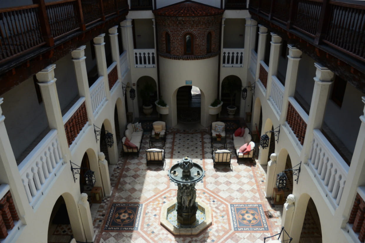 Si elle porte aujourd'hui les stigmates de son illustre propriétaire des années 90, la Villa jouit aussi de l'héritage de celui qui l'a faite construire : Adlen Freeman. Riche héritier, philanthrope curieux fasciné par Christophe Colomb, ce dernier s'est inspiré de l'Alcazar De Colon, à Saint-Domingue (érigé par le fils de l'explorateur) pour faire bâtir sa demeure en 1930. Il ramène même deux pierres de l'édifice colonial pour les y intégrer. Particulièrement entouré, il pense cette résidence comme un lieu d'hospitalité, où accueillir ses amis de passage. Les plus illustres figures de l'entourage de sa famille, dont Gandhi, ont l'honneur de toujours figurer en portraits en bas relief sur les murs des coursives. Le patio resté presque intacte offre un bon aperçu de l'allure initiale de la maison.