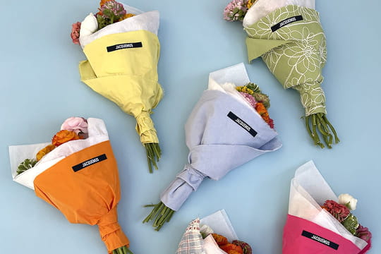 Depuis le 27 mars et jusqu'au 3 avril, Jacquemus tient une boutique de fleurs éphémère en partenariat avec une exploitation horticole varoise. Les bouquets de renoncules disponibles en pré-commande sont enveloppés dans des chutes de tissus colorés et estampillés du logo de la marque. Une idée brillante dans un contexte de fermeture des boutiques de prêt-à-porter, et aussi un énième preuve des liens solides entre fleurs et mode.