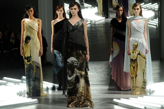 Pour Preen by Thornton Breggazi et Rodarte, les collections automne 2014 étaient l'occasion d'imprimer les personnages principaux de Star Wars sur les robes et les T-shirts, pour une dégaine de groupie stylée. Même son de cloche au cours du défilé Vetements printemps-été 2015. Le label a choisi de clamer haut et fort son attachement à la célèbre saga en déclinant les visages de ses héros sur les jupes des filles.