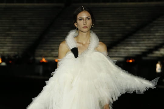 C'était l'événement dans le monde de la mode. Ce jeudi 17 juin, la maison Dior présentait sa collection croisière 2022 dans un cadre d'exception : le stade panathénaïque d'Athènes. Ce monument de la Grèce antique avait été rénové pour y accueillir, en 1896, les tous premiers Jeux olympiques de l'ère moderne. C'est inspiré par ce lieu d'histoire que Maria Grazia Chiuri, la directrice artistique de la maison, a décidé de présenter quatre-vingt onze silhouettes mêlant Antiquité et inspirations sportives très modernes. Pour clôturer ce show, une robe a attiré tous les regards : un modèle blanc dont la forme ressemblait à s'y méprendre à celle d'un cygne. Les ailes, les plumes et même le long cou de l'oiseau s'enroulant autour de celui de la mannequin créaient un trompe-l'œil bluffant.