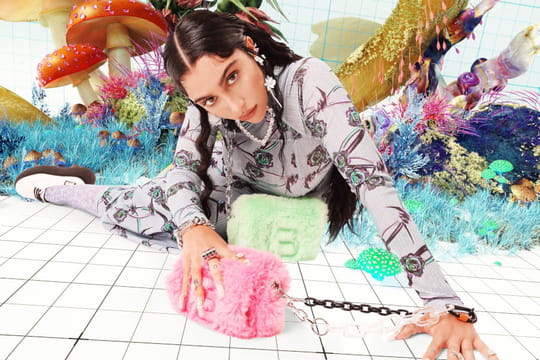 Sous la direction artistique de la Britannique Isamaya Ffrench, Lourdes Leon se la joue Alice aux pays des merveilles et déambule dans un univers psychédélique pour la campagne #thisisTECHNONATURE de Bimba y Lola. Aux côtés de champignons à strass et de plantes carnivores fluorescentes imaginés par l'artiste Carlos Sáez, la fille ainée de Madonna s'habille et se déshabille des vêtements de la collection. Les pièces phares ? Des sacs en fausse fourrure dans des tons vibrants, des robes aux motifs audacieux, des hauts qui brillent dans la nuit et des combinaisons imprimées. Une campagne décalée qui joue avec notre imagination.