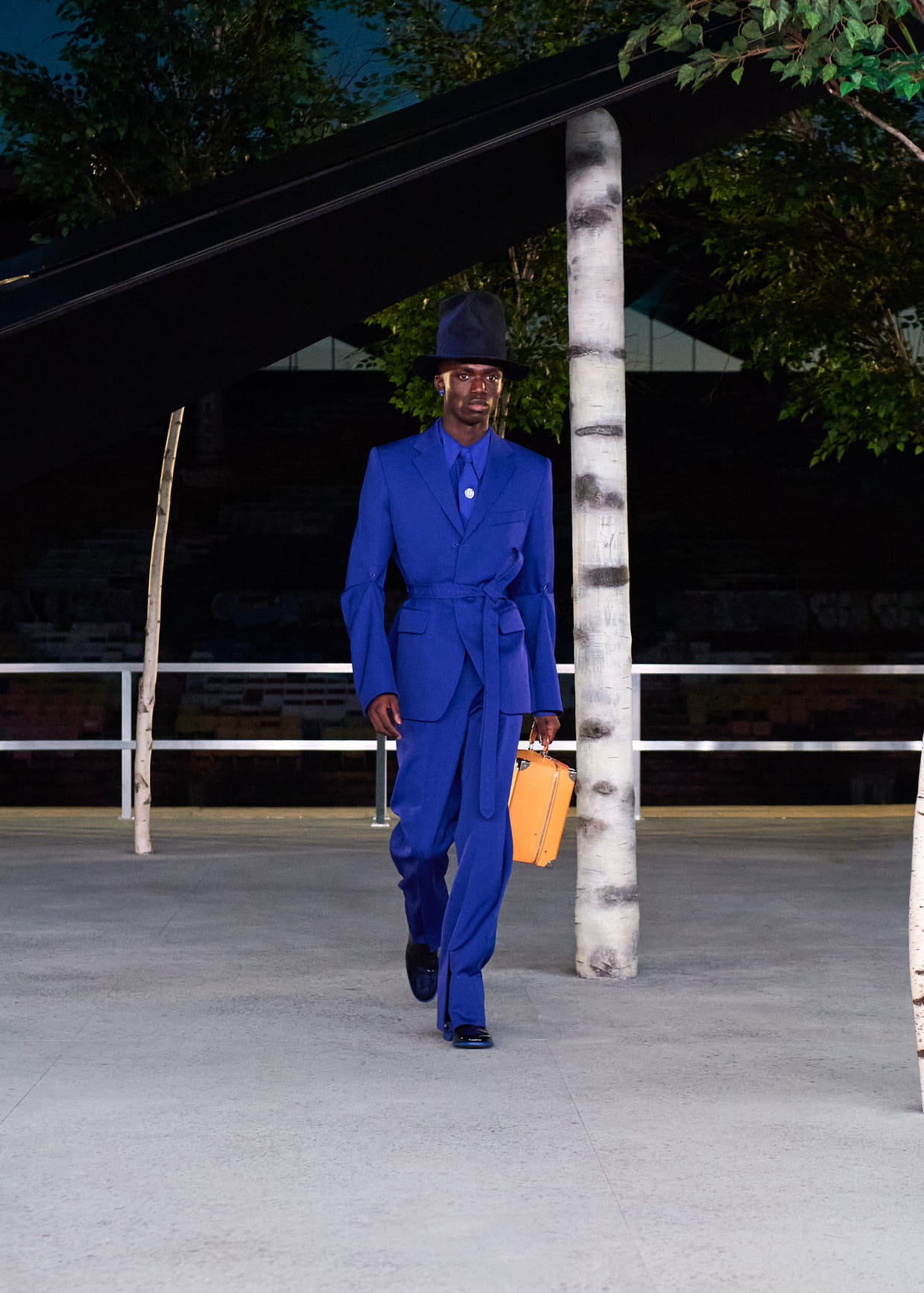 Look 2 du défilé Louis Vuitton Homme printemps-été 2022. Un show hommage à Virgil Abloh, présenté le 30 novembre 2021 à Miami.