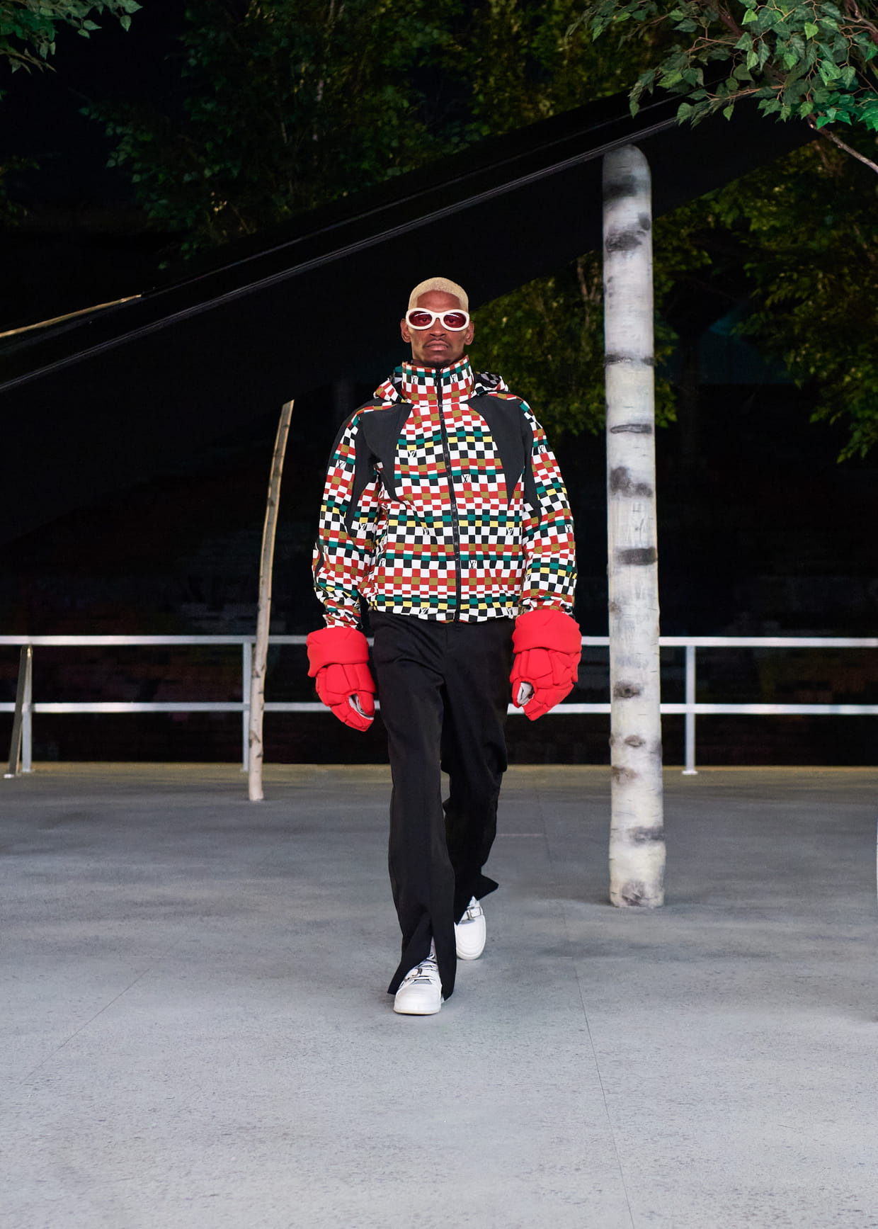 Look 55 du défilé Louis Vuitton Homme printemps-été 2022. Un show hommage à Virgil Abloh, présenté le 30 novembre 2021 à Miami.