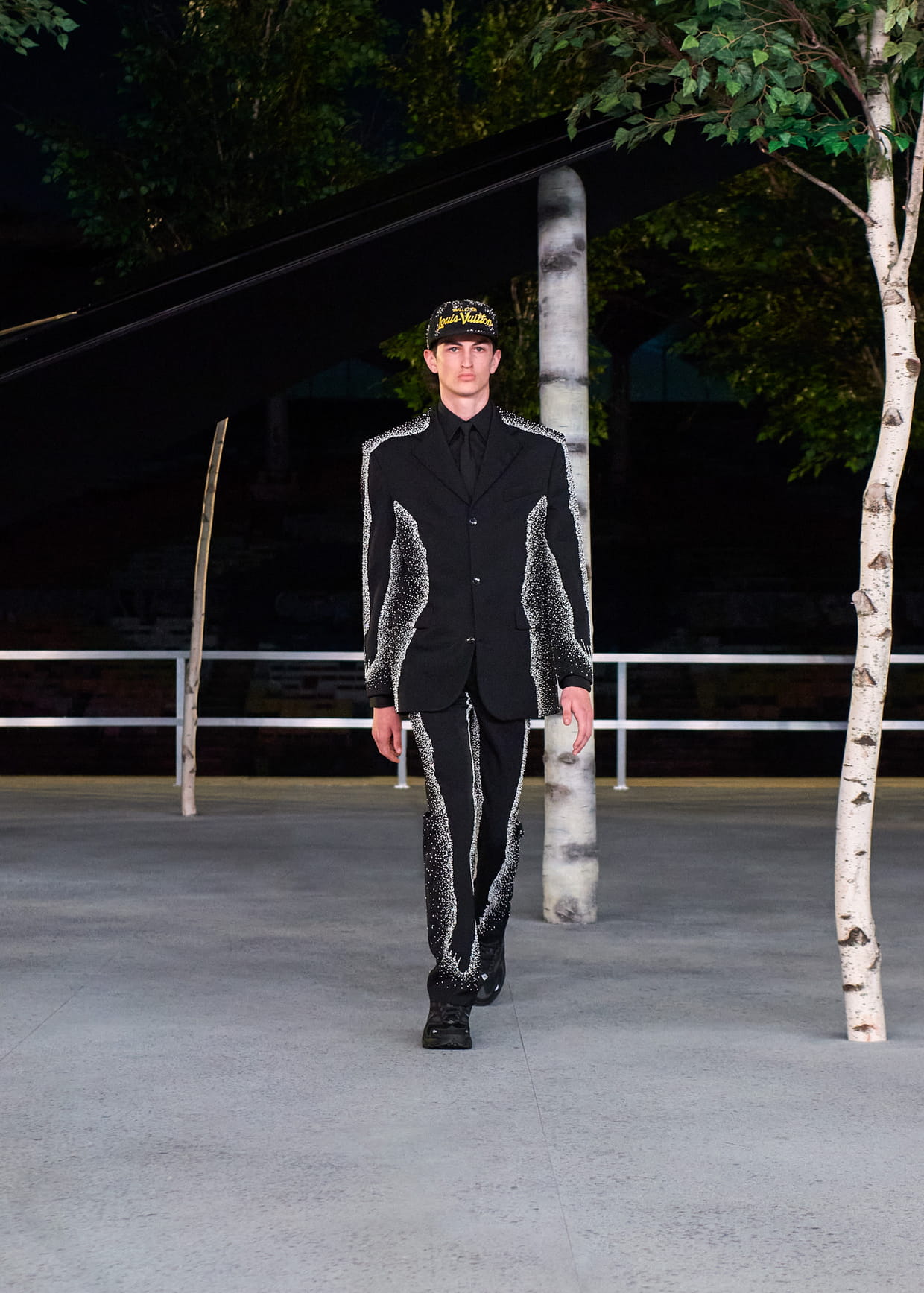 Look 63 du défilé Louis Vuitton Homme printemps-été 2022. Un show hommage à Virgil Abloh, présenté le 30 novembre 2021 à Miami.