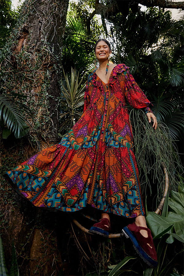 Longue robe à motifs multicolores "Yawanawa" de Farm Rio