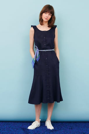 Robe évasée en lin bleu marine de Comptoir des cotonniers
