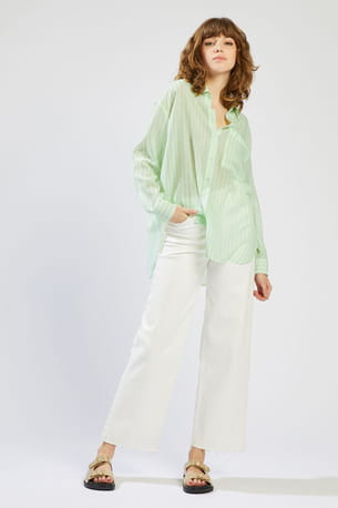 Chemise verte fluide rayée et légèrement transparente de Pimkie