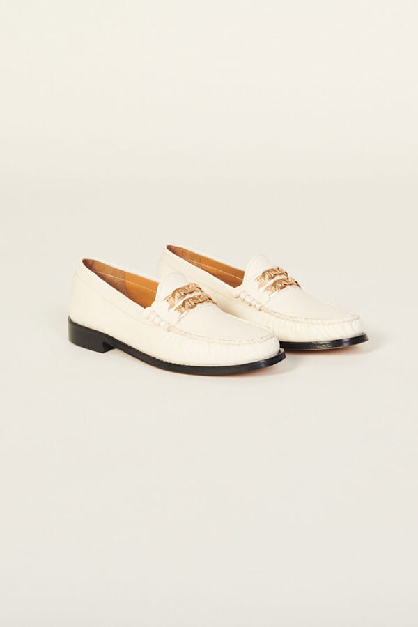 Mocassins blancs en cuir avec chaine dorée de Sandro