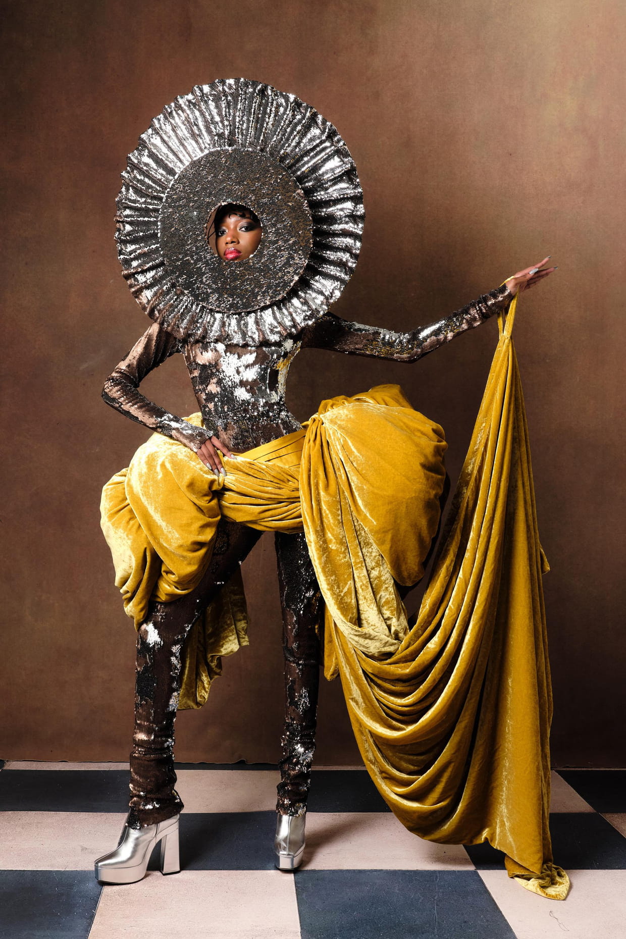 Silhouette de la collection Harris Reed printemps-été 2023 à Londres.