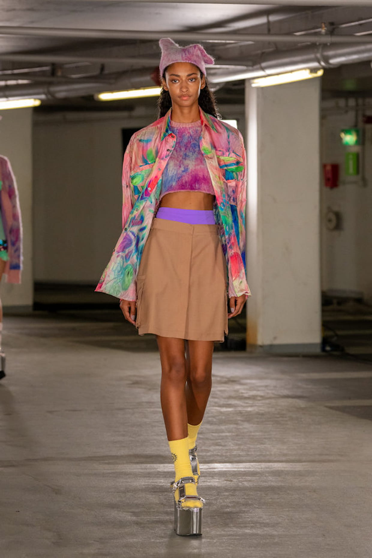 Silhouette du défilé Edward Crutchley printemps-été 2023 à Londres.