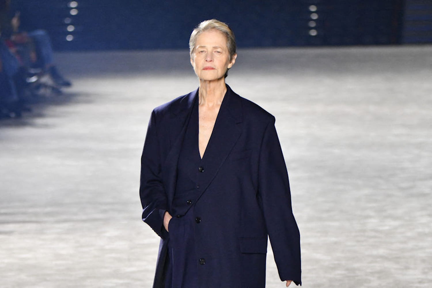 Chaque année, le directeur artistique de la marque propose à une personnalité de clôturer le show, en portant des pièces de la nouvelle collection. Après les passages d'Isabelle Adjani en janvier 2022 et d'Audrey Tautou en juin 2022, c'était au tour d'une nouvelle actrice de défiler comme une top modèle. Charlotte Rampling, l'actrice britannique âgée de 76 ans, a dévoilé la silhouette finale du show, un ensemble tailleur bleu marine à la coupe ample, associé à des escarpins noirs à bouts pointus très élégants.