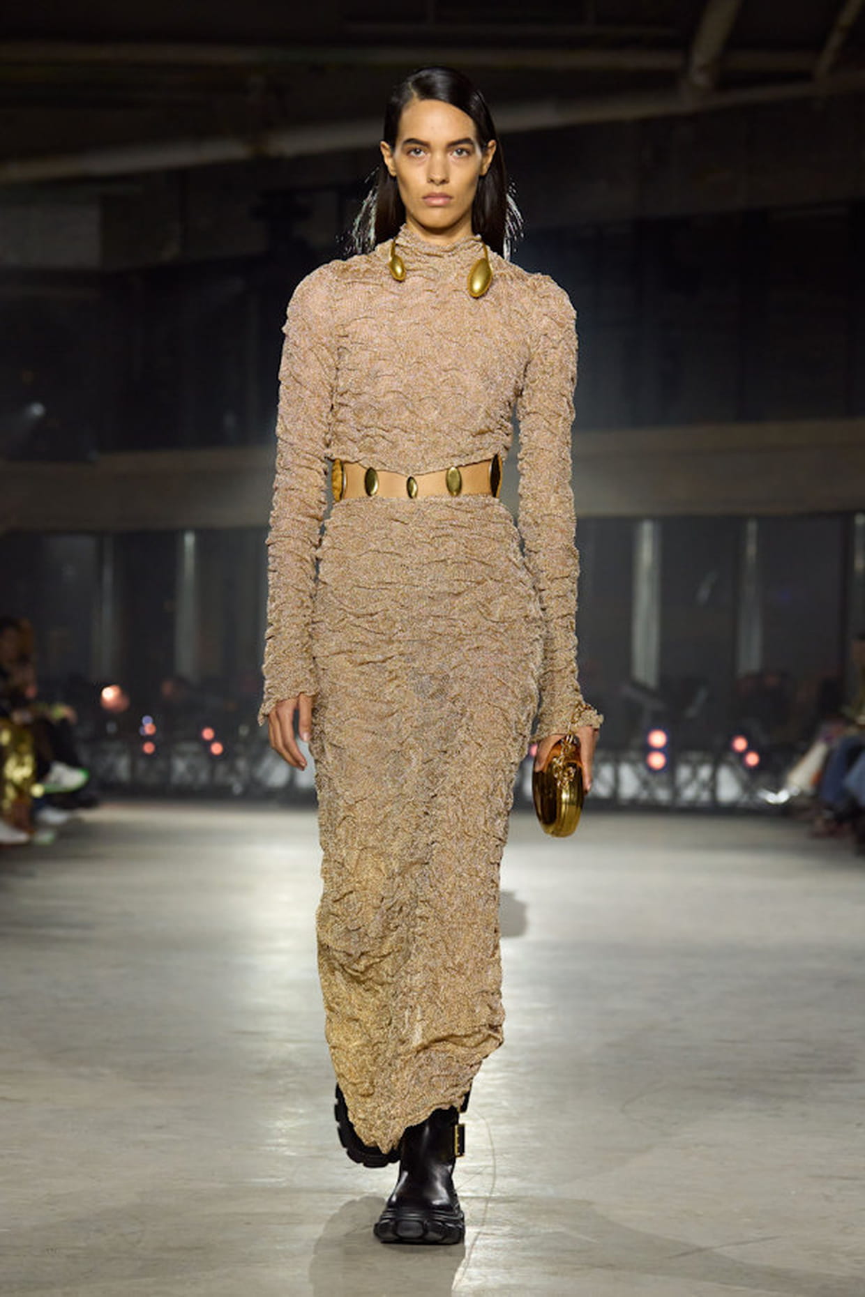 Robe froncée nude aperçue sur le défilé Simkhai