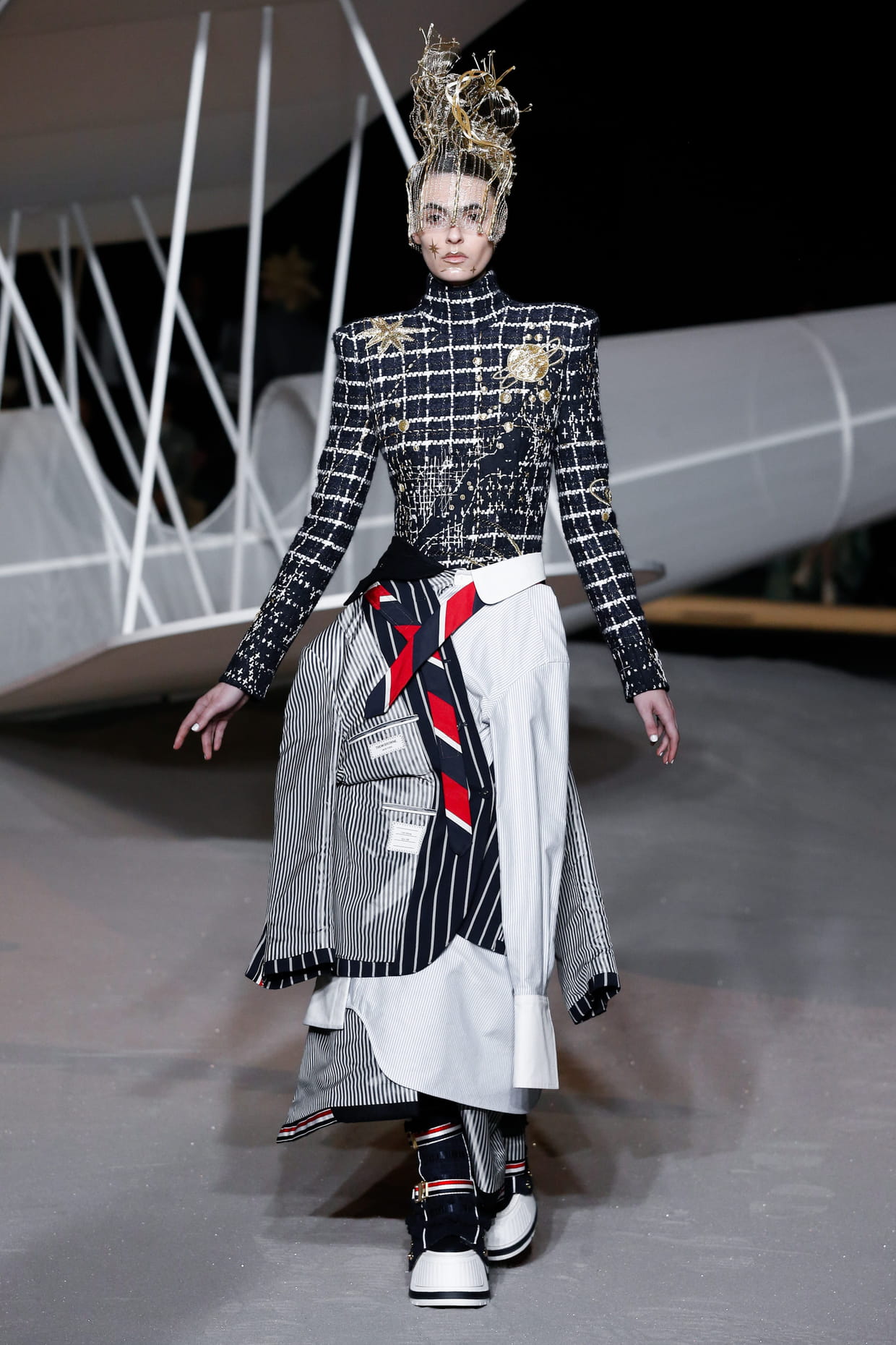 Top à carreaux et jupe tailleurs aperçus sur le défilé Thom Browne