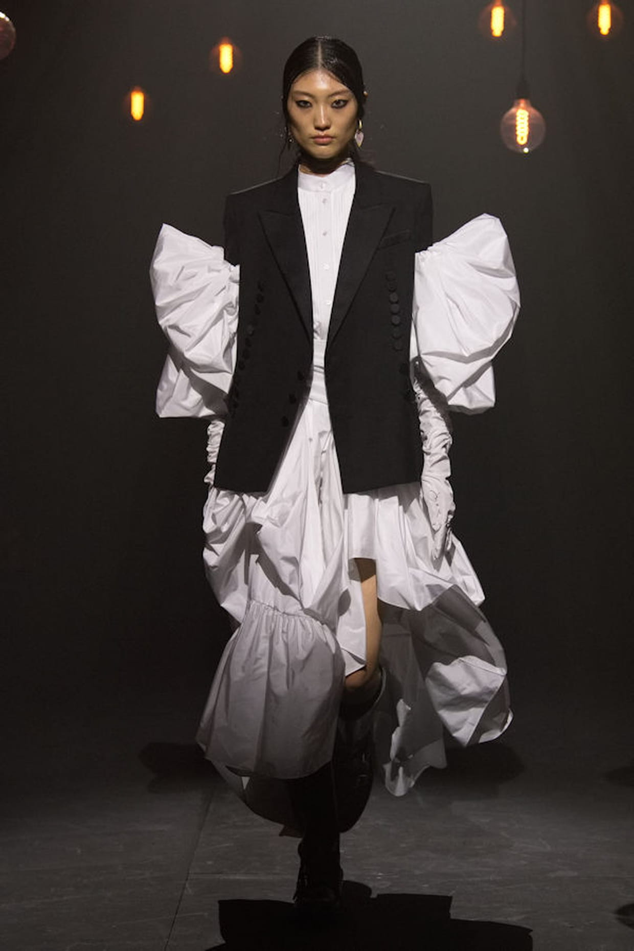 Robe blanche à volants et blazer à manches courtes aperçus sur le défilé Erdem