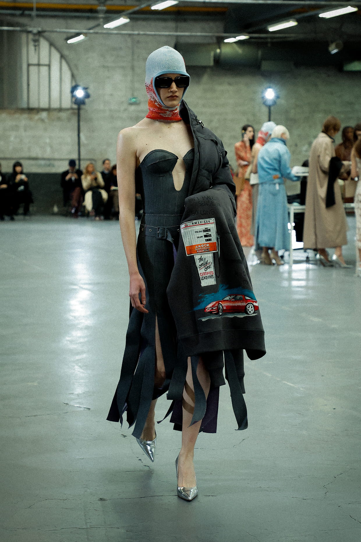 Robe bustier en denim frangé aperçue sur le défilé Rokh