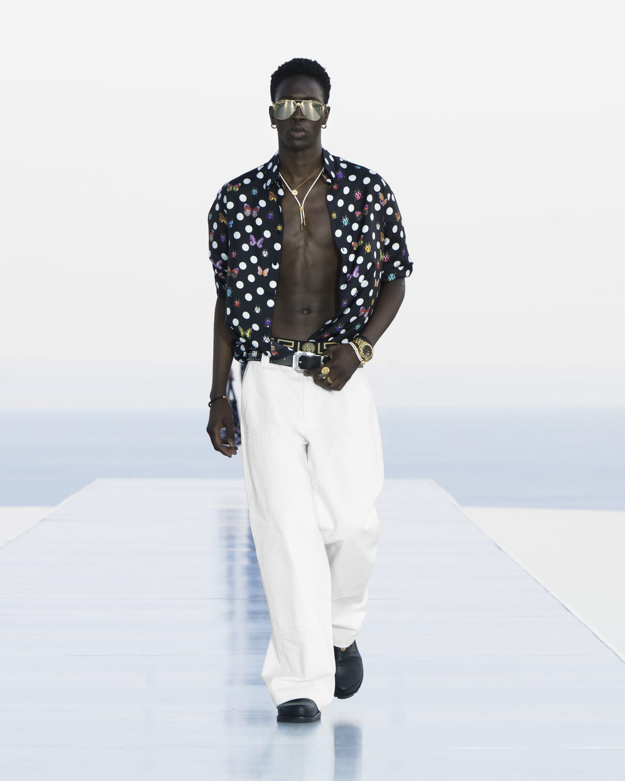 Look 25 du défilé La Vacanza de Versace en collaboration avec Dua Lipa.