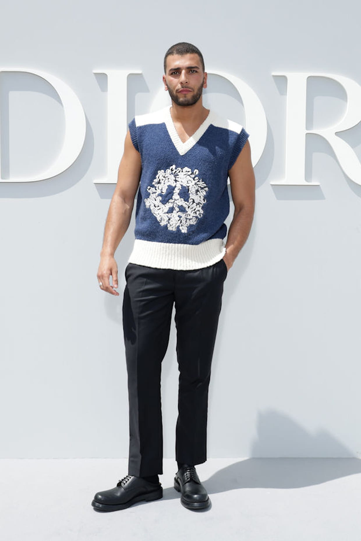Younes Bendjima en pull sans manches et pantalon noir au défilé Dior pendant la Fashion week homme printemps-été 2024 à Paris le 23 juin 2023.