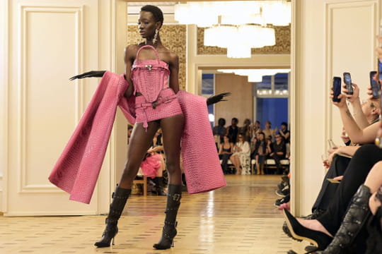 Après les bottes de personnage de jeu vidéo et le sac à main de la taille d'un grain de poussière imaginés par le studio MSCHF, les Crocs à trous jaunes adoubées par Victoria Beckham ou encore l'ensemble de lingerie de Julia Fox pour aller faire ses courses... Les fashionistas ont une nouvelle lubie : porter leur it bag en guise de vêtement. Le principe ? Détourner son sac à main pour en faire une minijupe, un soutien-gorge, une culotte... C'est du moins ce que suggère le dernier post Instagram de Christina Aguilera. Sur une photo publiée le 31 juillet 2023, la chanteuse américaine apparaît, vêtue de lunettes de soleil géométriques, d'un T-shirt noir à col rond et d'une minijupe pailletée. En plus d'être extrêmement courte, cette pièce rose pastel est recouverte de strass et ressemble curieusement au plus iconique des sacs à main, le Birkin d'Hermès.