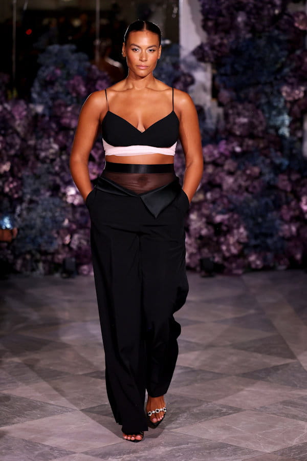 Brassière noire et pantalon fluide aperçus sur le défilé Christian Siriano