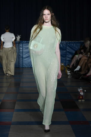 Longue robe vert d'eau transparente aperçue au défilé Puppets and Puppets © Don Ashby/Puppets and Puppets
