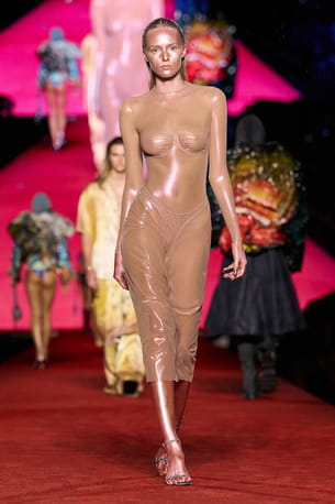 Robe nude irisée effet seconde peau aperçue sur le défilé Diesel