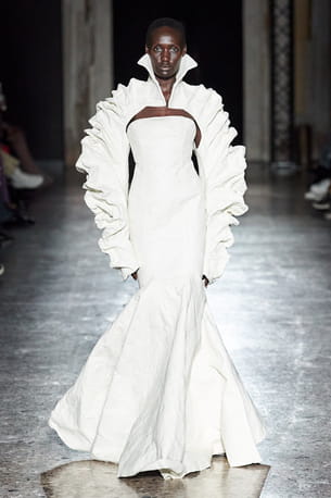 Robe bustier blanche et manches à volants aperçues sur le défilé Han Kjøbenhavn © Han Kjøbenhavn