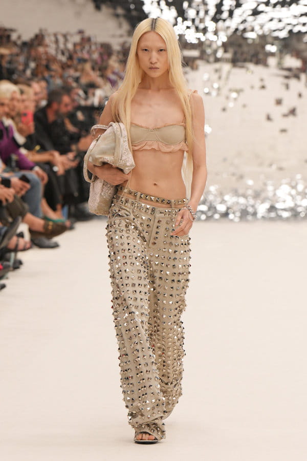 Soutien-gorge à volants et jean gris clouté aperçus sur le défilé Acne Studios © Acne Studios