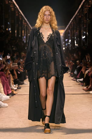 Nuisette transparente noire et kimono oversize aperçus sur le défilé Isabel Marant