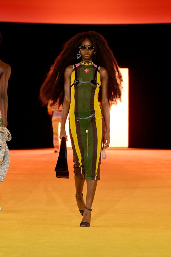 Robe transparente noir, jaune et vert aperçue sur le défilé Casablanca printemps-été 2024 à Paris.