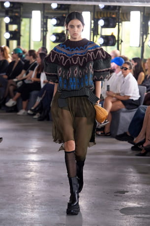 Pull tricoté à manches ballon et jupe transparente aperçus sur le défilé Sacai © Sacai